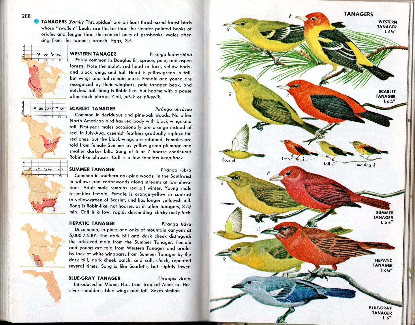 But when the second edition of the Golden guide came out in 1983, the Blue-gray Tanager had been removed. Despite those isolated cases of successful breeding in Florida, the species never became truly established and was disappearing by the late 70s. The only birders today who have the Blue-gray Tanager on their ABA Continental list must have seen it in south Florida in 1982 or earlier. I didn’t know any of those details when I saw that first one in Costa Rica in 2001—just that it was every bit as pretty as Singer’s illustration in my Golden guide.
