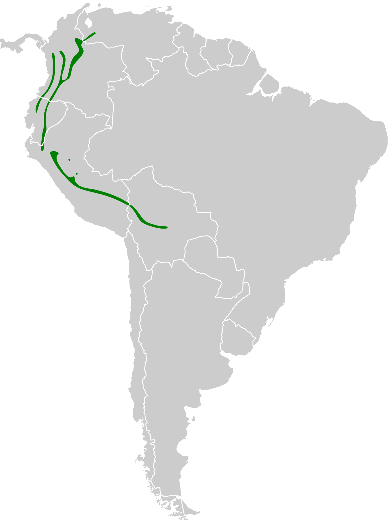 I’d already seen the Andean Cock-of-the-rock once, in Peru in 2016, which seemed appropriate because it is Peru’s national bird. This year I got many much more splendid looks in Ecuador. The two cock-of-the-rock species are allopatric—that is, their ranges do not overlap at all.