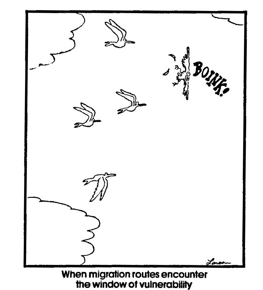 Lake Superior, a cold, deep lake with few islands, presents a significant hazard to warblers. When the wind is likely to carry nocturnal migrants, which are influenced by tail winds, over the water, the normal advantages of nighttime flight are in part offset by the advantage of flying by day, when the shoreline can be negotiated visually. Some variation in the degree of facultative versus endogenous controls of migratory behavior along Lake Superior may be of evolutionary advantage to warblers breeding in northern Minnesota and central Canada. Further study along the Lake Superior shoreline is necessary to compare the magnitude of nocturnal warbler migration to that of daytime flights.