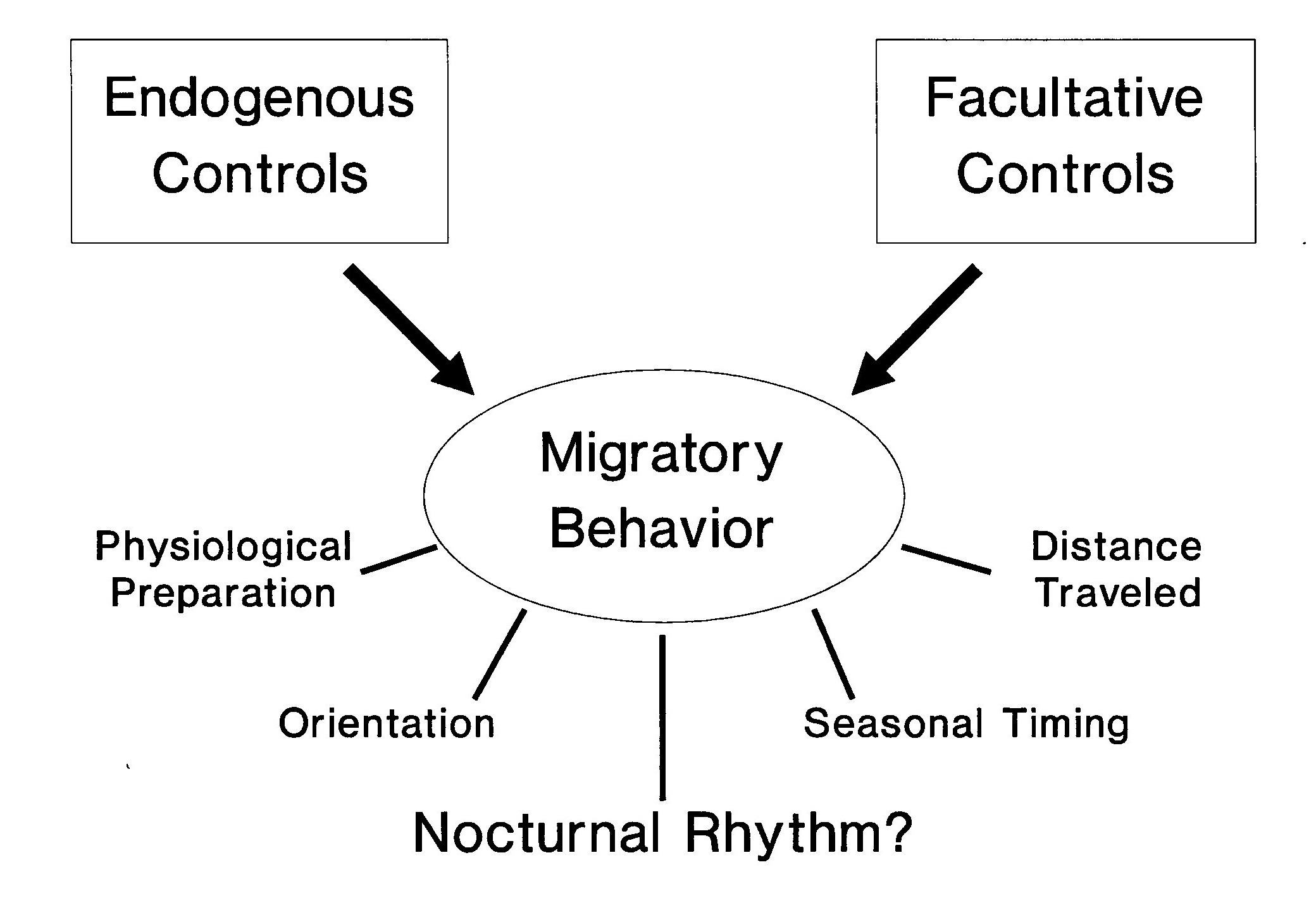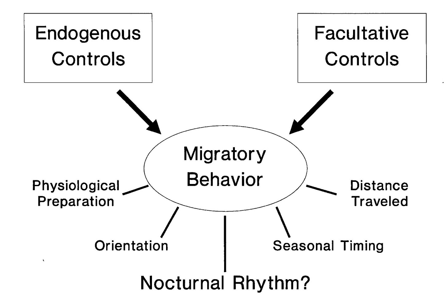 Terrill and Ohmart’s work on Yellow-rumped Warblers, Ketterson and Nolan’s on Dark-eyed Juncoes, studies of Sylviids in Europe, and other research all indicate that in many cases facultative and endogenous factors interact to control physiological preparation, orientation, seasonal timing, and distance traveled. Our analysis of daytime warbler flights along the north shore of Lake Superior suggests that there may also be interaction between facultative and endogenous controls over another aspect of migration: nocturnal rhythm.