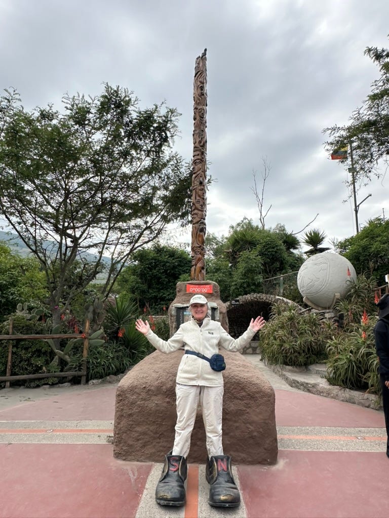 After our splendid condor encounter, we did one touristy thing that didn’t involve birds: we visited a museum near Quito where we could get our picture straddling both hemispheres directly on the equator.