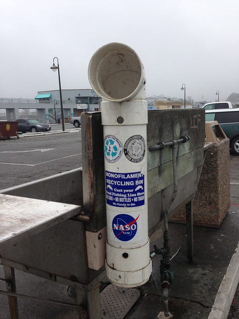 I discovered the hard way that monofilament is also dangerous for people when I was birding alone at Anzalduas Park in Mission, Texas, and tripped on a wad of it, ripping my pants, bloodying my knees, and hurting my ankle. No one was around to help, but it could have been much worse. I managed to limp to my car, and the injury was on my left, not my right ankle, so I could still drive.